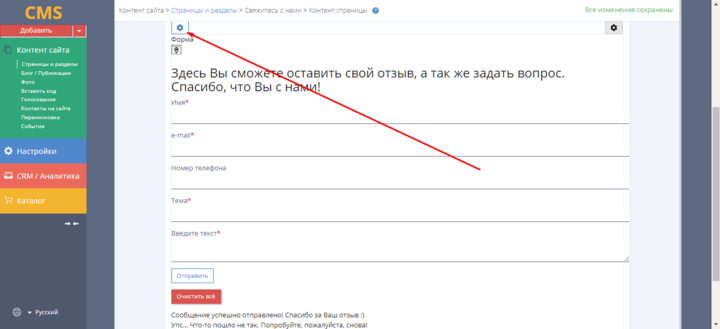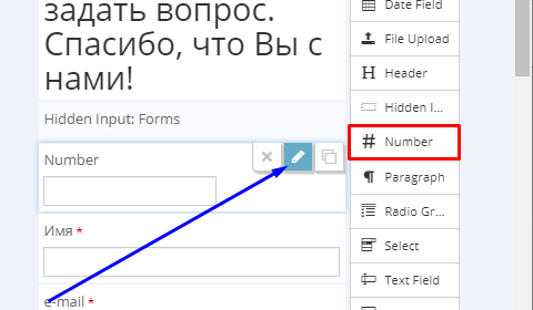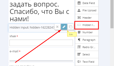 Переходим в редактирование Форм, кликнув на шестерёнку, на которую указывает красная стрелочка на изображении.