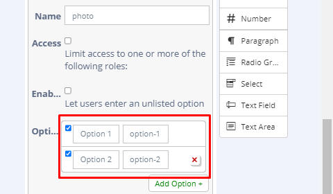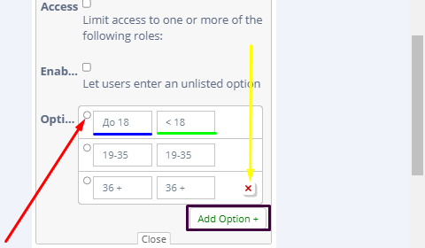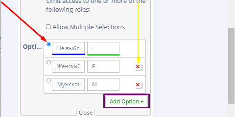 Так же графы можно добавлять, кликнув по кнопке, которая обведена фиолетовым прямоугольником на фото, Add Option.