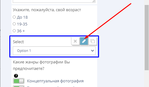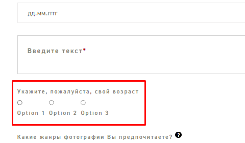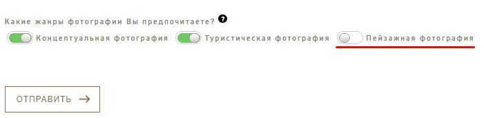 Если сравним фото справа и картинку выше - замечаем, что есть 3 значения для выбора: Концептуальная, Туристическая и Пейзажная фотографии. Так же видим, что на обоих изображениях - последнее значение не выбрано по дефолту.