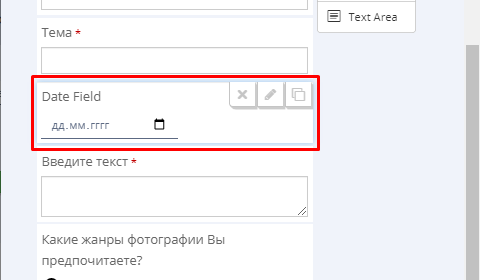 Data Field является простым в использовании блоком, который нужен для указания пользователем даты.
