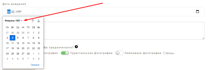 Пользователь может прописать дату числами, либо кликнув по значку календаря в конце строки - открыть такой календарик, как на фото справа.