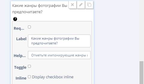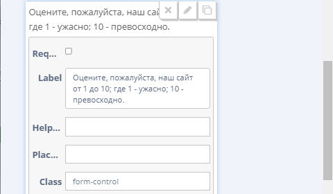 Наш блок будет не обязательным для заполнения. В нём мы можем попросить, к примеру, оценить наш сайт. Пропишем это в поле Label.