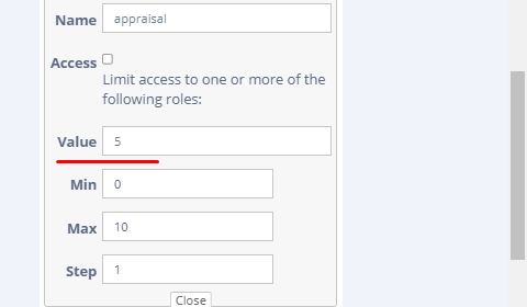 Поскролив ниже - видим, поля: Value, Min, Max, Step.