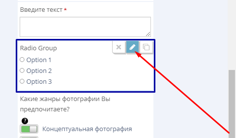 Так же можно задать стандартно выбранный вариант, поставив отметку в кружочке, на один из которых указывает красная стрелочка на изображении справа.