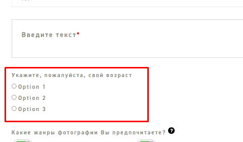 Сохранив изменения и перейдя на сайт - можем наблюдать (показано на третьем изображении), что значения для выбора теперь расположены поочерёдно, в строку. Так же изменился внешний вид переключателя.