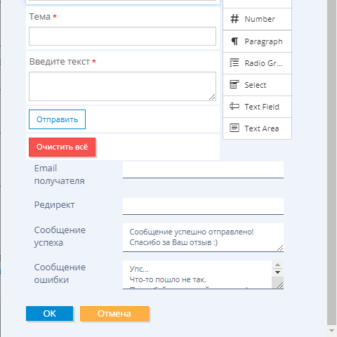 На картинке справа отображен вид Форм обратной связи в админ-панели, которого мы уже добились.
