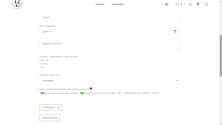 Так же можем обратить внимание на поля со звёздочками, которые являются обязательными для ввода.