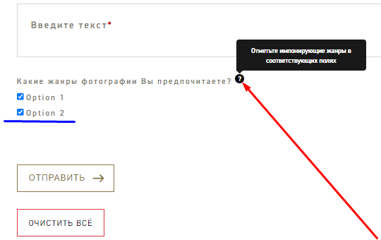Как мы помним из инструкции по блоку Checkbox - графа, подчёркнутая синим - отобразится на сайте, а та, что зелёным - придёт на почту.