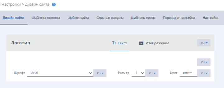 Добавить логотип - очень просто. Для этого нужно перейти в раздел Настройки > Дизайн сайта. Администратор может задать логотип как текстом, так и изображением.