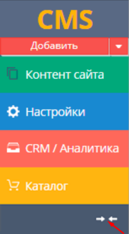 Контент сайта, Настройки, CRM / Аналитика и Каталог - являются разделами админ-панели. Всё, что мы видим при клике на них - это подразделы.