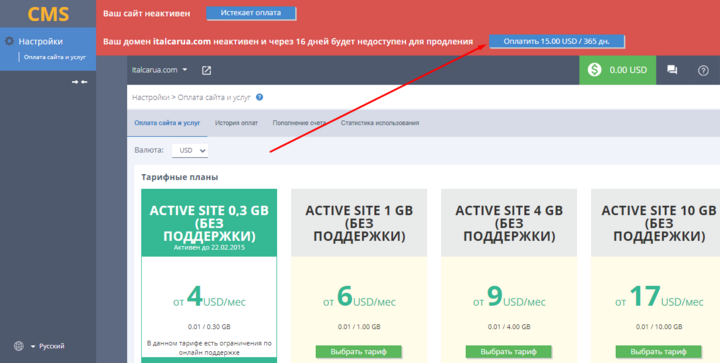 Для его продления необходимо кликнуть по кнопке Оплатить, на которую указывает стрелочка на изображении.