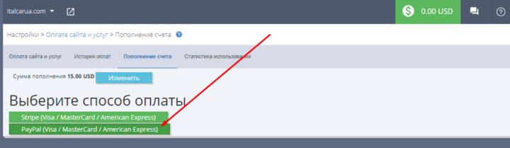 Дальше представляется возможность выбора способа зачисления средств на счёт, который является более удобным, к примеру, PayPal и кликнуть по соответствующей кнопке.