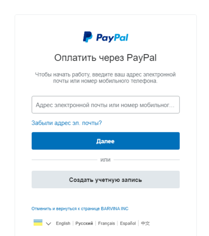 Система переводит администратора сайта на платежный сервис. Здесь необходимо создать новую учётную запись, либо войти.